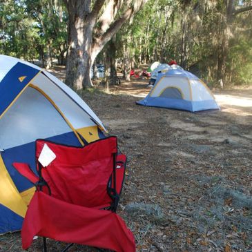 We offer tent camping, RV camping, and four individual cabins (sleep 4) available to rent.